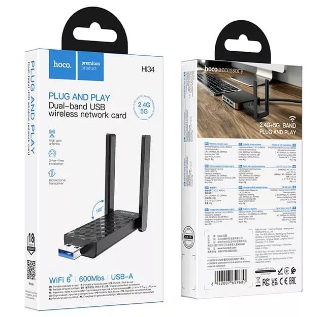 - 1Аксессуары, г. Ставрополь Лермонтова 240: Адаптер Wi-Fi Hoco HI34: 3 шт.