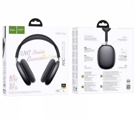 - Комплектация: Полноразмерные беспроводные наушники Hoco W65; кабель AUX; type-C зарядный кабель; руководство к использованию
