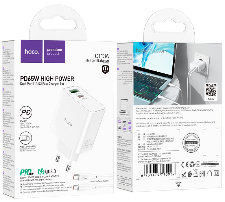 - 1Аксессуары, г. Ставрополь Лермонтова 240: СЗУ Hoco C113A 1USB-C+1USB 65W: 9 шт.